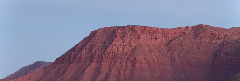 The cliffs were fully lit by the time I got home. I stopped at the end of the street and looked back at them for a second. Red rock, blue sky.